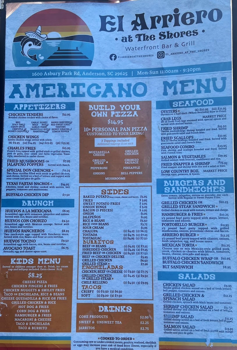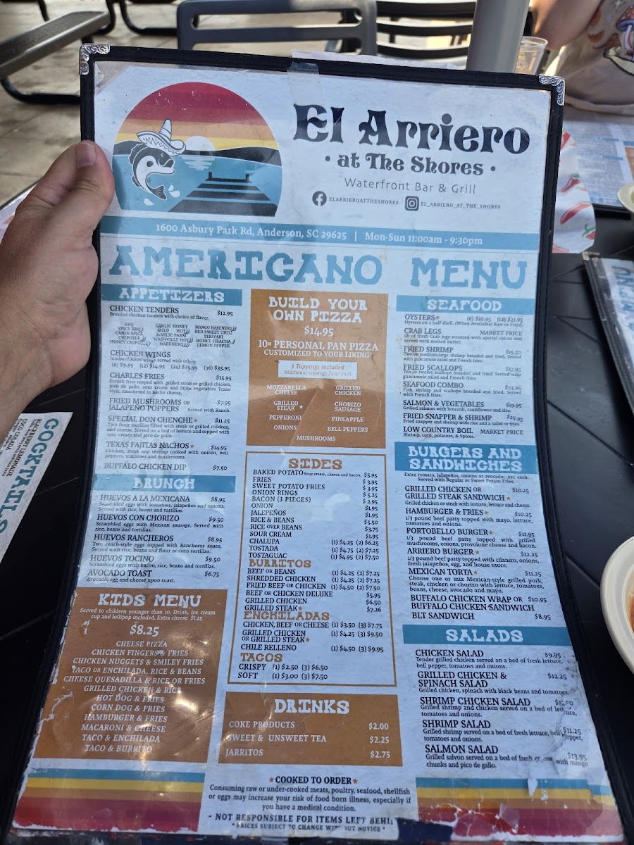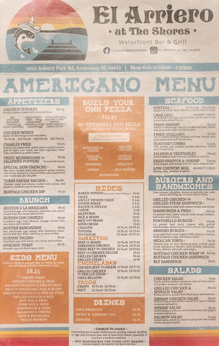 El Arriero at The Shores offers a menu that blends casual Mexican favorites with familiar American sides, creating a relaxed dining experience suited for gatherings by the water or leisurely meals on a sunny afternoon. The menu is approachable and straightforward, featuring comforting dishes and shareable appetizers designed to complement the open-air, lakeside atmosphere.